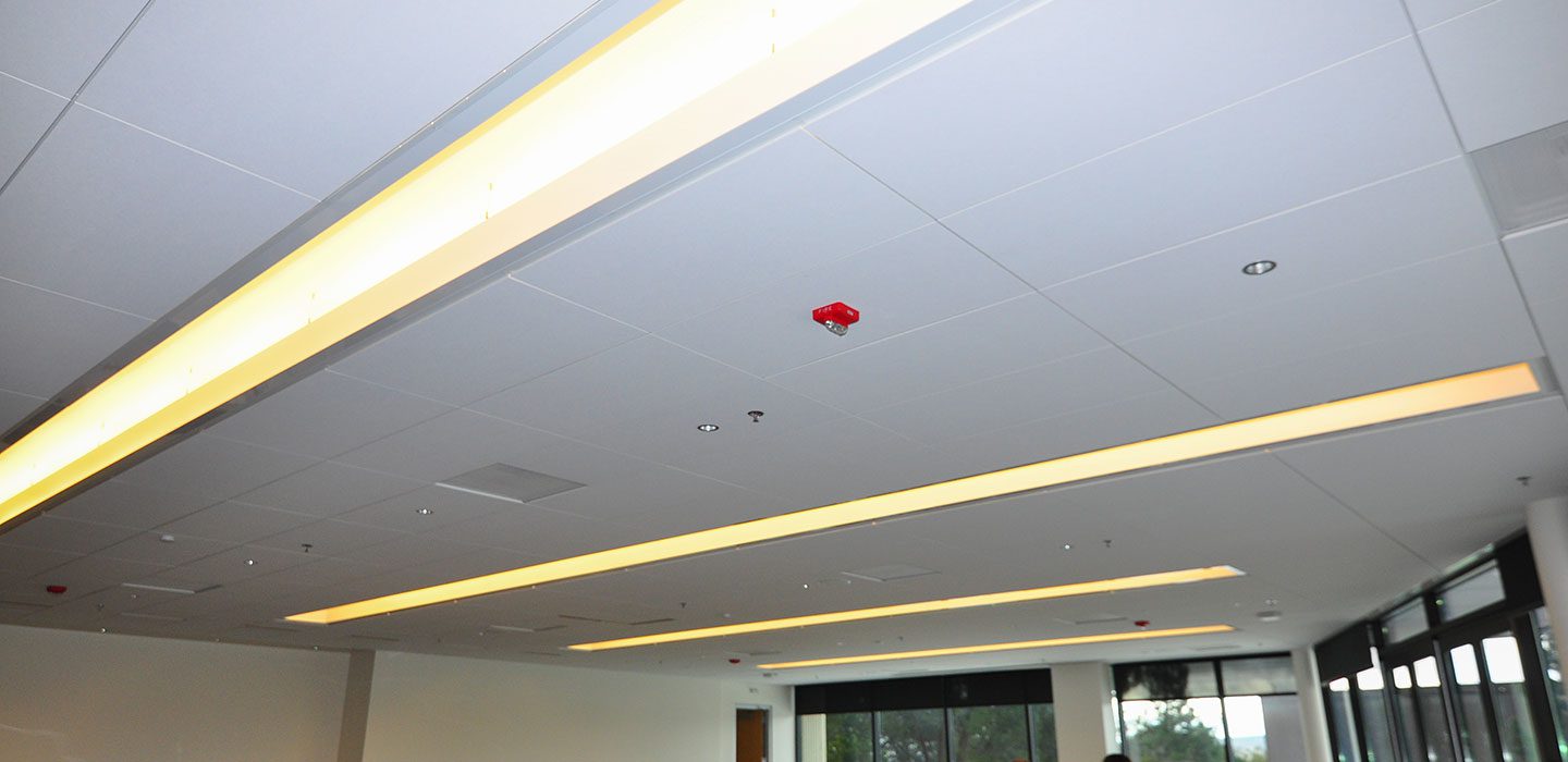 Our Staple/Glue-On ceilings are designed to significantly improve sound control within commercial spaces, creating a more comfortable and productive environment by reducing noise levels and enhancing overall acoustics.